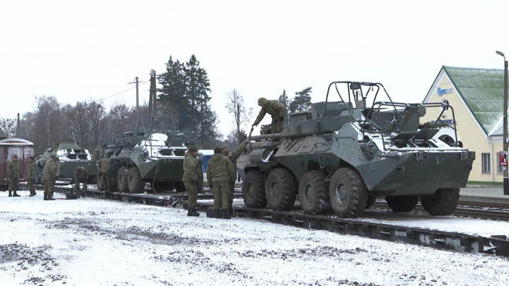 В Минске сегодня встречали еще два эшелона с российскими военнослужащими и техникой.