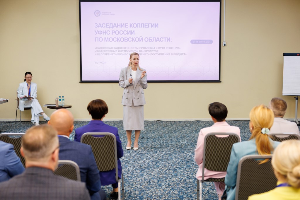 27-28 июня в Истре состоялось выездное заседание коллегии УФНС России по Московской области под председательством руководителя управления Екатерины Макаровой . На мероприятии были рассмотрены вопросы: «Налоговая задолженность: проблемы и пути решения», «Эффективные инструменты банкротства: Как сохранить бизнес и обеспечить поступление в бюджет». В заседании коллегии приняли участие заместитель руководителя ФНС России Юлия Шепелева , начальник Управления развития кадрового потенциала и служебной культуры ФНС России Вероника Прищепа , начальник управления по работе с задолженностью ФНС России Наталья Шалыгина , заместители руководителя и начальники отделов управления, начальники территориальных налоговых органов Московской области. Выступая перед участниками коллегии, заместитель руководителя ФНС России Юлия Шепелева акцентировала внимание на необходимости создания атмосферы взаимного доверия между налогоплательщиками и налоговыми органами, оказании максимальной поддержки бизнесу в условиях современных санкционных ограничений с целью обеспечения простого и удобного исполнения налоговых обязательств. Начальник Управления развития кадрового потенциала и служебной культуры ФНС России Вероника Прищепа сообщила, что развитие технологий без повышения вовлеченности сотрудников налоговых органов в рабочий процесс не дает больше такого эффекта, как раньше. Последние несколько лет ФНС России вкладывается в построение взаимодействий нового типа с собственными сотрудниками, уделяет большое внимание их обучению и развитию, создавая новые образовательные программы. «Важно искать более эффективные пути инвестирования в персонал, создавая комфортную для работника рабочую среду, в которой он с радостью спешит на работу каждый день, где его ждут интересные задачи, приятные коллеги и уважительное отношение руководителя», – заключила Вероника Прищепа . О преимуществах внедрения Единого налогового счета рассказала начальник управления по работе с задолженностью ФНС России Наталья Шалыгина . Характеризуя новую концепцию формы расчетов с бюджетом, она отметила, что «это правильная история», так как механизм позволяет налоговикам самостоятельно разносить поступления в бюджетную систему, что кратно снижает количество невыясненных налоговых платежей. К неоспоримым преимуществам внедрения ЕНС можно отнести установление единых сроков уплаты налогов, что привело к упрощению платежного календаря налогоплательщиков. Также полностью поменялся механизм взаимодействия с банками, который позволил обеспечить снятие блокировок с банковских счетов налогоплательщика в течение одного дня после погашения задолженности. Наталья Шалыгина обратила внимание на то, что внедрение ЕНС отменило единый срок давности платежа: «В любой момент плательщик может вернуть положительный остаток, который есть на ЕНС, вне зависимости от того, когда он был уплачен – три года назад или месяц». Вторая часть коллегии прошла в формате «круглых столов», в ходе которой участники совещания представили проекты по следующим тематикам: «Взаимодействие с конкурсным управляющим: союзник или противник?», «СДДО - чистый ресурс: внутренний контроль», «Что лучше для сохранения бизнеса: отсрочка/рассрочка или мировое соглашение?», «Доначислено = обе