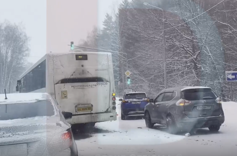 Автобус Мострансавто растолкал машины на светофоре в Чеховском округе