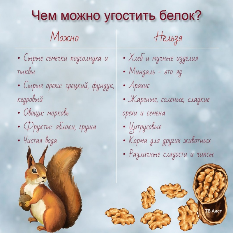 Собираясь на прогулку в лес, прихватите с собой лакомство и для его жителей. Чем можно угостить белок? Смотрите на фото.