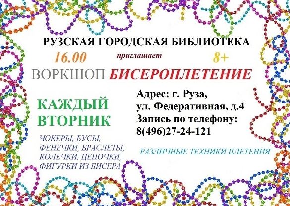 Рузская городская библиотека приглашает всех желающих на мастер-классы по бисероплетению.