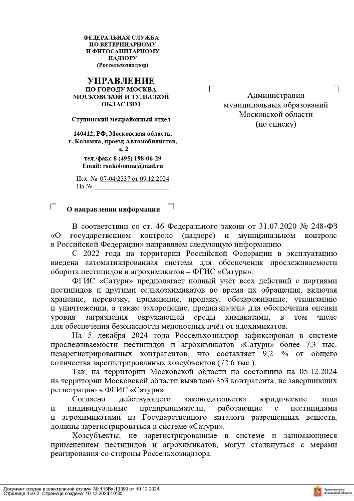 Таким образом, ФГИС «Сатурн» представляет собой важный шаг к созданию более безопасной и ответственной системы обращения с пестицидами и агрохимикатами в России.