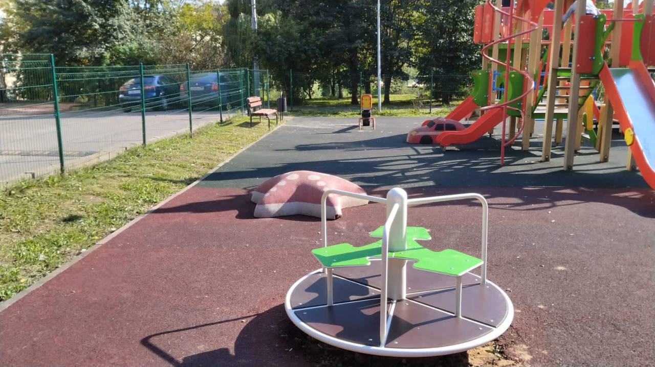 Сотрудники организации «Лабвита» установили карусель на детской площадке