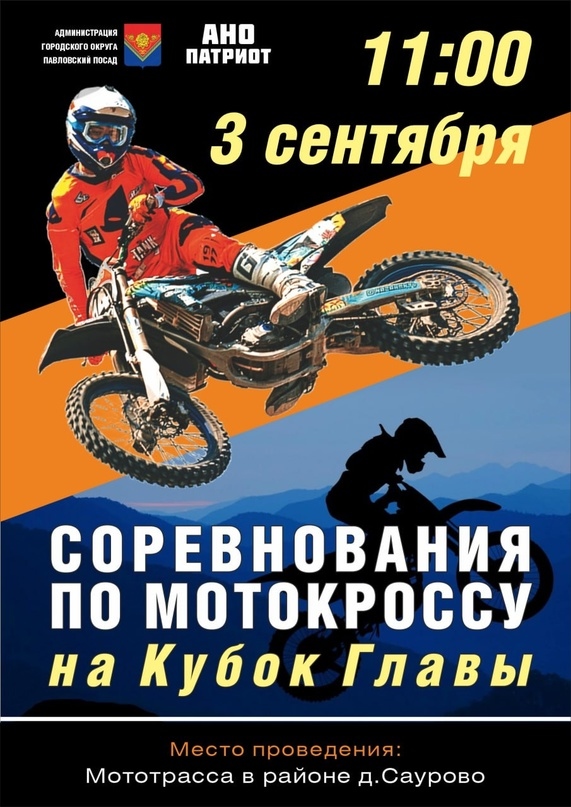 3 сентября в районе д. Саурово состоятся соревнования по мотокроссу на Кубок Главы городского округа Павловский Посад, посвященные защитникам Отечества.