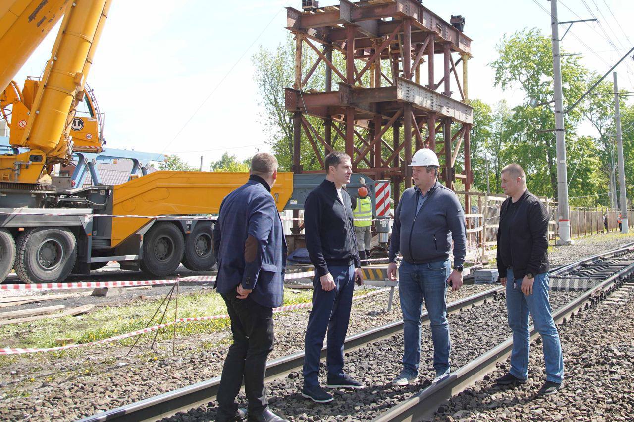 Владимир Волков проверил монтаж пролёта надземного пешеходного перехода в Люберцах